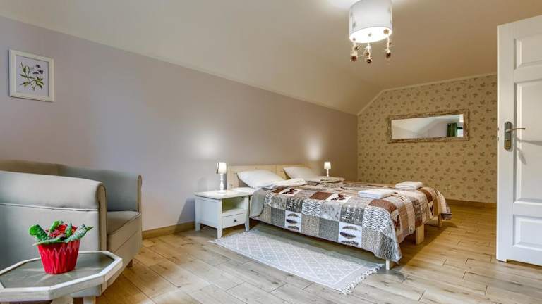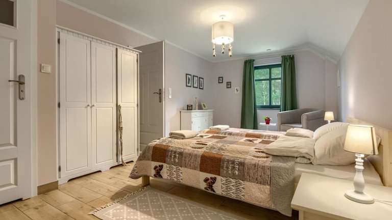Das Rentynówka in Gietrzwałd liegt in einer malerischen Umgebung und ist von Natur umgeben. Der nahegelegene Busbahnhof Olsztyn bietet eine gute Anbindung an die Umgebung. Das Stadion Olsztyn ist ebenfalls leicht erreichbar. Der Flughafen Olsztyn-Mazury ist nur 81 km entfernt, was eine bequeme Anreise ermöglicht.