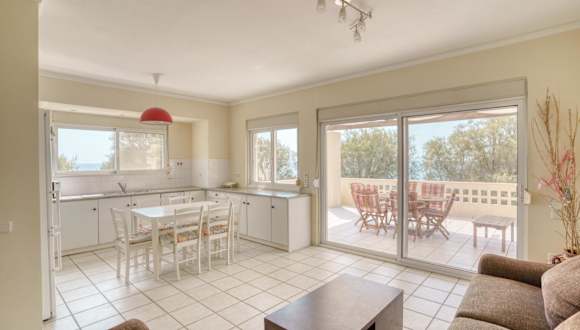 Die Ferienwohnung umfasst zwei Schlafzimmer und zwei Badezimmer. Zu den Annehmlichkeiten zählen Bettwäsche, Handtücher, ein Flachbild-TV, eine voll ausgestattete Küche sowie eine Terrasse mit Meerblick. Die Unterkunft ist mit Klimaanlage und Heizung ausgestattet und bietet Familienzimmer. Die Wäsche wird gemäß den Richtlinien der örtlichen Behörden gereinigt, und es gibt Zugang mit Schlüssel sowie Gartenmöbel auf der Terrasse.