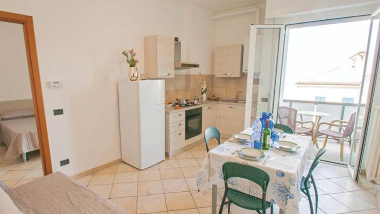 Die Apartments im Hotel Residence Doral sind geräumig und modern eingerichtet. Sie verfügen über einen eigenen Balkon, auf dem Sie den Blick auf das Meer oder die Umgebung genießen können. Die voll ausgestattete Küche ermöglicht es Ihnen, Ihre eigenen Mahlzeiten zuzubereiten, und der gemütliche Sitzbereich mit einem Schlafsofa lädt zum Entspannen ein. Jedes Apartment ist mit einem LCD-TV ausgestattet, um Ihnen Unterhaltung zu bieten. Einige Zimmer sind klimatisiert, um Ihnen auch an heißen Tagen Komfort zu bieten.
