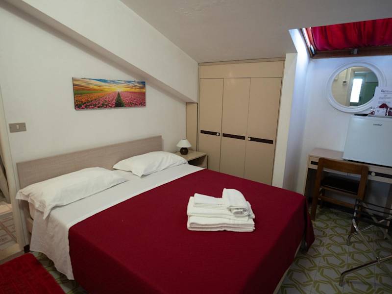 Die Zimmer in der Residence Europa sind jeweils mit einem eigenen Badezimmer ausgestattet. Bestimmte Zimmer verfügen über eine Veranda oder einen Patio, während andere einen Stadtblick bieten.