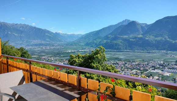 Die familiär geführte Georgenhöhe liegt etwas oberhalb von Lana und bietet einen einmaligen Panorama-Blick über das Etschtal, Meran und die Texelgruppe. In eindrucksvoller Aussichtslage verbinden sich in der Georgenhöhe Südtiroler Gastlichkeit und moderner Komfort. Unser Haus liegt ist idealer Ausgangspunkt sowohl für Natur- und Sportliebhaber als auch für Entspannungssuchende. Freuen Sie sich nach einem abwechslungsreichen Tag beim Wandern, Radfahren oder Bummeln auf ruhige Stunden in Ihrem Appartement oder auf der Liegewiese.