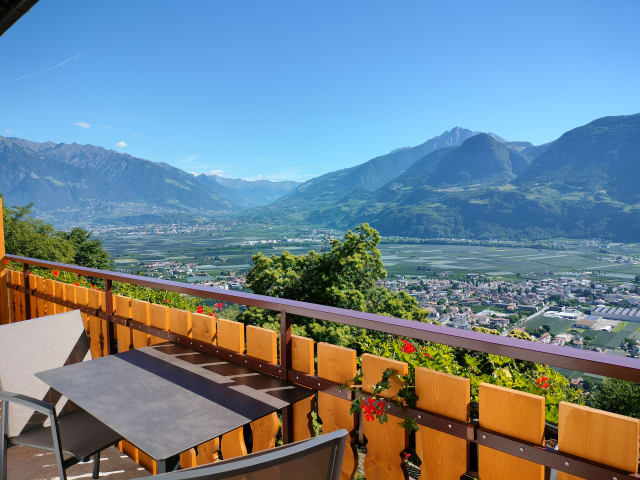 Unsere Appartements sind hochwertig ausgestattet mit Bad, Einbauküche, Sat-TV, hellem Wohnraum und großem Schlafzimmer. Die Appartements verfügen alle über einen Balkon (Südost - Ausrichtung) mit Panoramablick auf die umliegende Bergwelt und das Burggrafenamt. Das Thema Berge haben wir aufgegriffen und unsere Wohnungen danach benannt. Alle unsere Zimmer sind mit den gängigen Standards versehen und verfügen über ein großes Badezimmer mit Föhn, Balkon oder Terrasse mit Panorama - Talblick, Sat - TV, Sitzecke und Sofa sowie eine großzügig ausgestattete Garderobe.