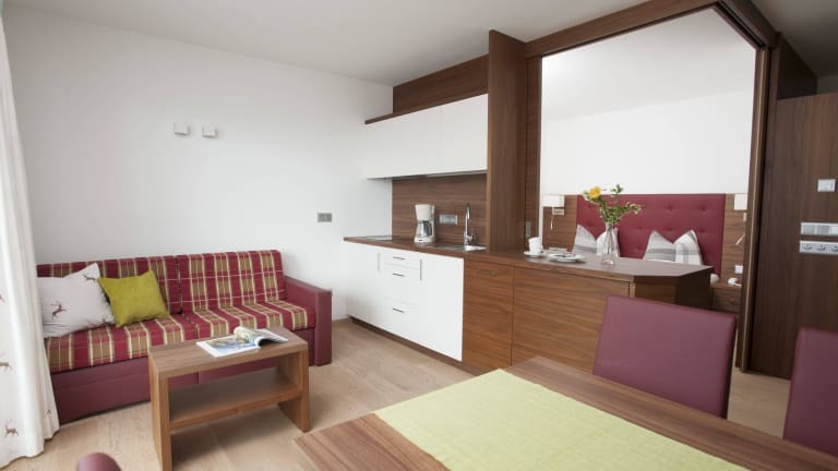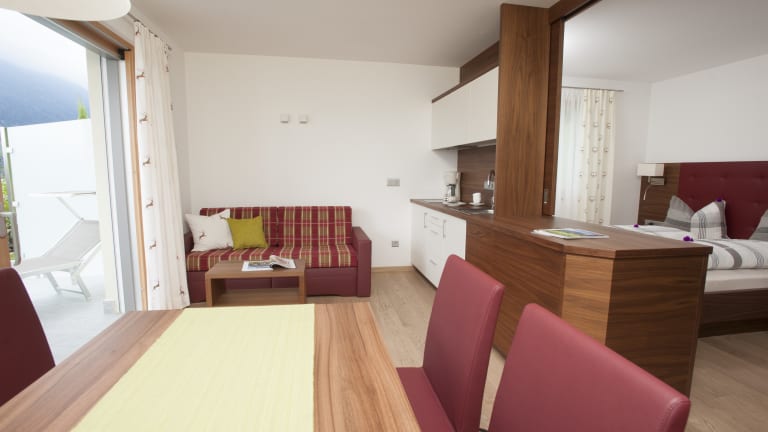 Unsere Residence Gruberhof liegt sehr zentral! Geschäft, Bushaltestelle und Seilbahn in unmittelbarer Nähe. Sehr komfortabel eingerichtet mit Natur-Materialien. Alle Einrichtungen im Hotel können frei mitbenutzt werden!