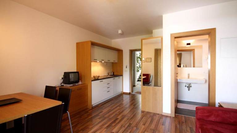 Die Apartments im Residence Haus Ragen sind modern, hell und freundlich eingerichtet. Sie verfügen über einen Eingangsbereich mit Garderobe und Safe, ein Badezimmer mit WC und Dusche sowie einen Haartrockner. Das Schlaf- und Wohnzimmer bietet ein Doppelbett, ein Schlafsofa, einen Schreibtisch, Sat-TV und WLAN. Jedes Apartment verfügt zudem über einen Balkon. Der separate Küchenbereich ist mit einem Glaskeramikherd, einem Kühlschrank und einem Spülbecken ausgestattet. Ein Essbereich ist ebenfalls vorhanden. Die Küche ist mit allen notwendigen Utensilien ausgestattet und Bettwäsche, Handtücher und Reinigungsmittel werden gestellt.