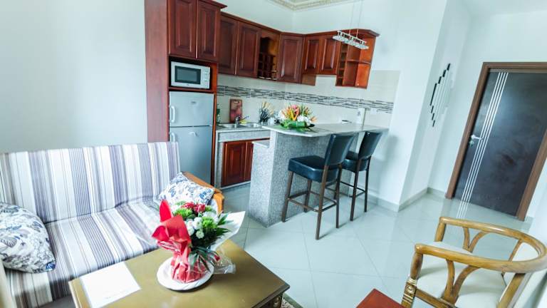Das Résidence Hôtelière Le Jomonia in Libreville bietet komfortable Unterkünfte mit einer Vielzahl von Annehmlichkeiten wie einem Restaurant, einer Bar und kostenfreiem WLAN. Die klimatisierten Zimmer sind gut ausgestattet und einige verfügen sogar über eine Küche. Genießen Sie ein leckeres Frühstück und entspannen Sie auf der Sonnenterrasse. Der internationale Flughafen Léon-Mba ist nur 4 km entfernt.
