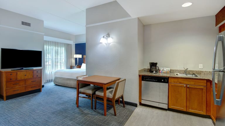 Beginnen Sie Ihren Tag im Residence Inn mit einem leckeren Frühstücksbuffet. Das Hotel bietet auch einen praktischen Lieferservice für das Abendessen in einem örtlichen Restaurant. In der Lobby können Sie jederzeit Kaffee und Zeitungen genießen.