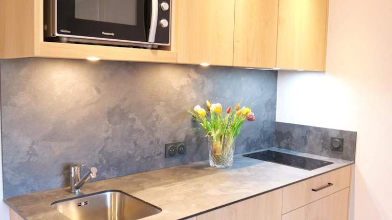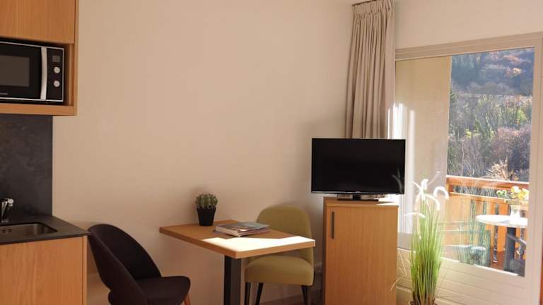 Jedes Studio ist mit einem LCD-TV, einem Telefon und WLAN ausgestattet. Einige Studios verfügen über einen Balkon. Die Küchenzeile ist ausgestattet mit einer Mikrowelle und einem Essbereich. WLAN steht für bis zu zwei Verbindungen pro Studio kostenfrei zur Verfügung.
