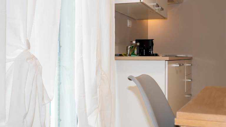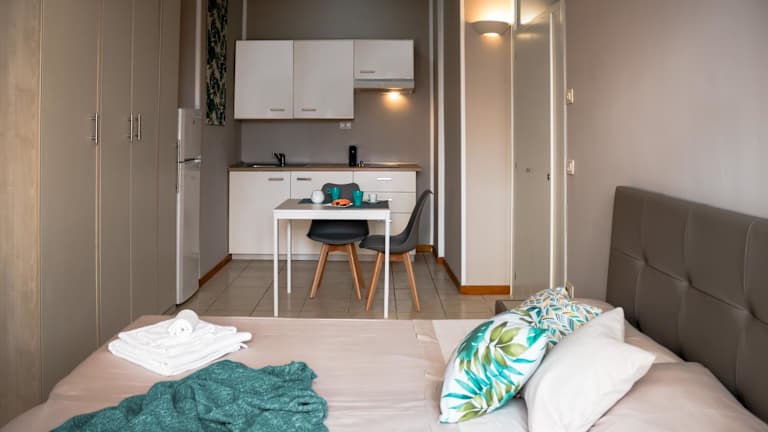 Die Zimmer sind mit einer voll ausgestatteten Küchenzeile, einem Flachbild-TV und einem eigenen Badezimmer ausgestattet. Zu den Annehmlichkeiten gehören ein Kühlschrank, eine Mikrowelle, eine Herdplatte und eine Kaffeemaschine. Jedes Zimmer verfügt zudem über ein Bidet, kostenlose Pflegeprodukte und einen Haartrockner.