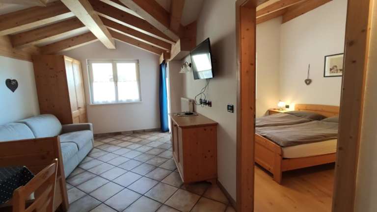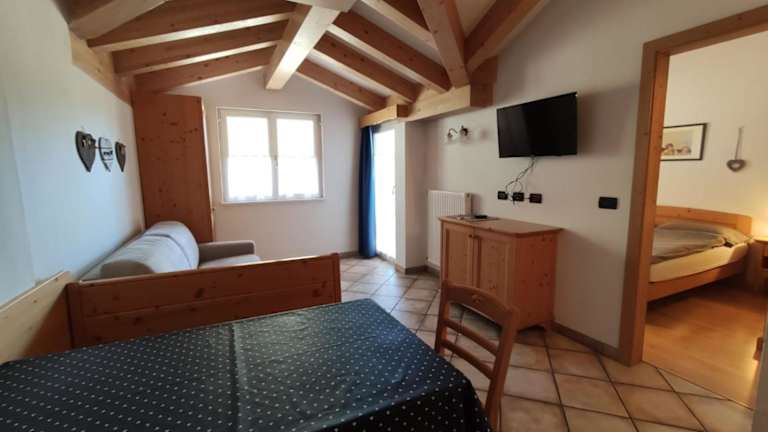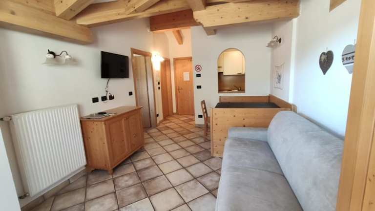 Die Apartments in der Residence Montebel sind komfortabel und gemütlich eingerichtet. Sie verfügen über Holzmöbel, Parkettböden in den Schlafzimmern und ein Klappbett. Jedes Apartment ist mit einem TV ausgestattet und verfügt über eine voll ausgestattete Küchenzeile mit Geschirrspüler. Der separate Wohn- und Essbereich bietet Platz zum Entspannen und Essen. Einige Apartments verfügen zudem über einen Balkon mit Blick auf die Stadt.