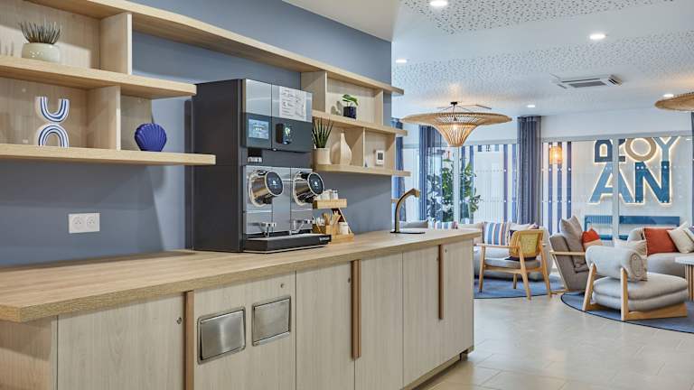 Die Wohneinheiten in der Résidence Prestige Odalys L'Orée du Parc sind mit einer Küchenzeile ausgestattet, die einen Kühlschrank, Geschirrspüler, Mikrowelle und Kaffeemaschine umfasst.