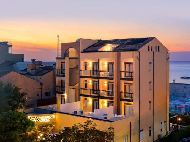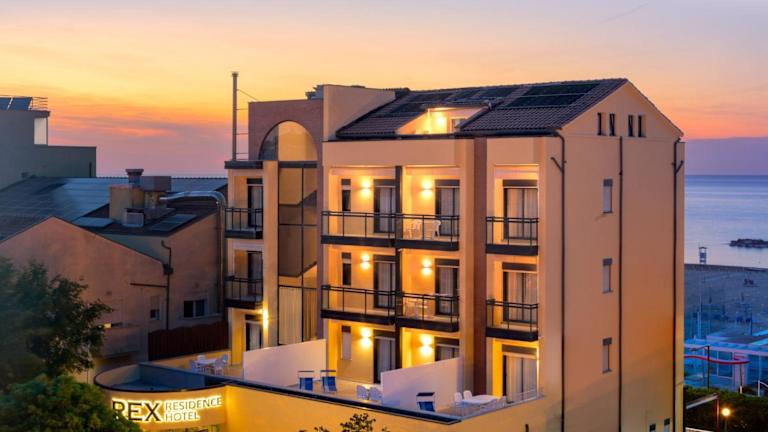 Das Rex Residence Hotel in Cattolica ist die ideale Unterkunft für Ihren Strandurlaub in der Region Emilia-Romagna. Es bietet komfortable Unterkünfte mit kostenfreiem WLAN und eine Vielzahl von Annehmlichkeiten wie einen Außenpool, einen Kinderspielplatz und kostenlose Fahrräder. Genießen Sie den Strand, der nur wenige Schritte entfernt ist, und erkunden Sie die Umgebung mit den kostenlosen Privatparkplätzen.
