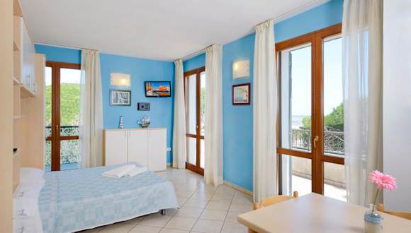 Die Apartments in der Residence Riva Blu sind modern, hell und geräumig. Sie bieten Ihnen eine Terrasse oder einen Balkon, von dem aus Sie teilweise einen schönen Blick auf die Adria haben. Die Apartments sind mit allen Annehmlichkeiten ausgestattet, die Sie für einen angenehmen Aufenthalt benötigen.