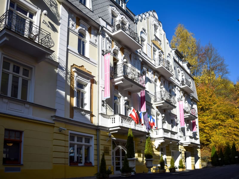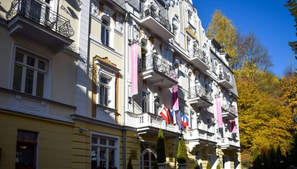 Das Kurhotel liegt im Zentrum von Marienbad, nur 250 m von der Kolonnade und der Singenden Fontäne entfernt. Die Region ist bekannt als beliebtes Ziel für Ruhesuchende und Aktivurlauber. In der näheren Umgebung befinden sich Skipisten und Langlaufloipen, die etwa 500 m entfernt sind. Der Flughafen liegt etwa 200 m entfernt, während der Bahnhof rund 3,5 km vom Hotel entfernt ist. Ein Golfplatz befindet sich in etwa 2 km Entfernung.