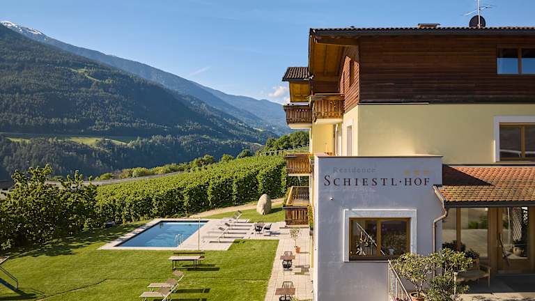 Willkommen in Eurem Urlaubszuhause, willkommen bei der Residence Schiestlhof in Natz-Schabs. Malerisch in Obstwiesen gebettet, setzt der Schiestlhof mit einer einzigartigen Kombination aus familiärer Betreuung, Ruhe, Erholung, großzügigen Apartments und mannigfaltigen Freizeitmöglichkeiten neue Akzente für Urlaub mit der ganzen Familie im Dialog mit der unberührten Natur. Freut Euch auf einen Urlaub mit Herz, im Herzen Südtirols! 8 gute Gründe für einen Urlaub bei der Residence Schiestlhof: 1. Gästekarte mit zahlreichen Vorteilen 2. Whirlpool & Sauna samt Ruheraum 3. Großer Garten/Spielwiese 4. Spielzimmer für die Kleinen 5. Beheiztes Freischwimmbad 6. Leckeres Frühstücksbuffet 7. Ruhig gelegen am Rand des Dorfes 8. Zentral zwischen Brixen, Plose & Gitschberg-Jochtal