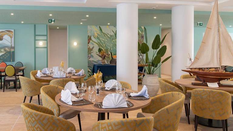 Die Unterkunft enthält ein Restaurant, das französische Küche serviert. Zudem gibt es ein Café vor Ort, das verschiedene Getränke und Snacks anbietet.