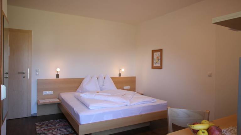 Im Garni & Residence Sonngart wird ein süßes und herzhaftes Frühstück mit hausgemachten Marmeladen und Apfelsaft aus eigener Herstellung serviert. Es gibt auch einen Gemeinschaftskühlschrank mit Self-Service-Getränken.