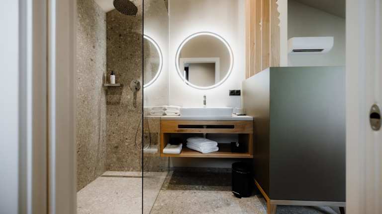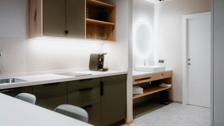 Alle Unterkünfte sind zur Selbstversorgung ausgelegt und verfügen über Parkettböden. Sie sind ausgestattet mit Flachbild-TV, Safe, einer Küchenzeile mit Kühlschrank sowie einem eigenen Badezimmer mit Bidet. In den Zimmern steht ein voll ausgestattetes eigenes Badezimmer mit Dusche und Haartrockner zur Verfügung.