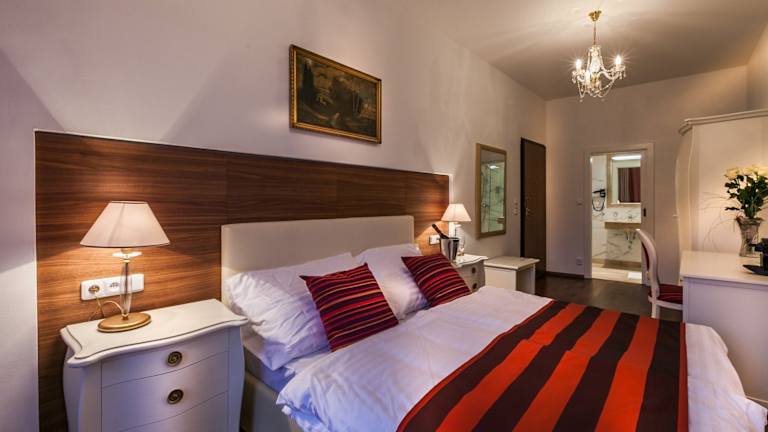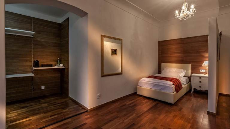 Die Zimmer im Hotel Little King U Malvaze sind gemütlich und komfortabel eingerichtet und bieten alles, was Sie für einen angenehmen Aufenthalt benötigen. Jedes Zimmer verfügt über einen TV, ein eigenes Badezimmer mit Dusche, eine Minibar, hochwertige Kosmetikprodukte von L'Occitane, Hausschuhe und einen Safe. Bitte beachten Sie, dass die Zimmer nur über eine Treppe erreichbar sind. WLAN steht Ihnen im gesamten Hotel kostenlos zur Verfügung.