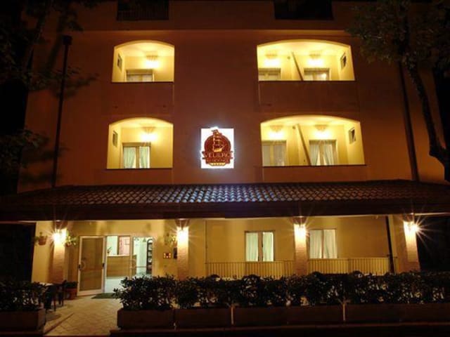 Die Residence Veliero liegt in San Mauro a Mare und ist nur eine Gehminute vom Sandstrand entfernt. Die Lage ist ideal für einen Strandurlaub und bietet eine entspannte und ruhige Atmosphäre. Der Bahnhof Bellaria ist nur 1,9 km entfernt und ermöglicht eine bequeme Anreise mit dem Zug. Cesenatico, eine charmante Küstenstadt, erreichen Sie in nur 12 Fahrminuten.