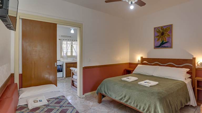 Die Ferienwohnung besteht aus einem Schlafzimmer, einem Wohnzimmer und einer voll ausgestatteten Küche mit Kühlschrank. Das Badezimmer ist mit einer Dusche und kostenlosen Pflegeprodukten ausgestattet. Handtücher und Bettwäsche werden bereitgestellt, und die Ferienwohnung ist klimatisiert.