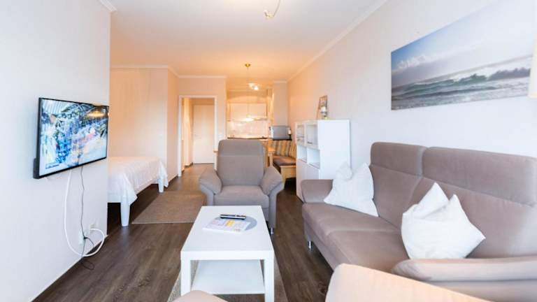 Die Residenz am Hang Appartement 411 bietet Übernachtungsmöglichkeiten mit Meerblick und Zugang zu einer Sauna. Die Unterkunft ist eine Nichtraucherunterkunft mit einer ruhigen Umgebung, ideal für Erholungssuchende. Ein Check-in ist ab 16:00 Uhr und bis 18:00 Uhr möglich, während der Check-out bis 10:00 Uhr erfolgen muss. Für die Nutzung ist eine Zahlung per Überweisung vor der Anreise erforderlich.