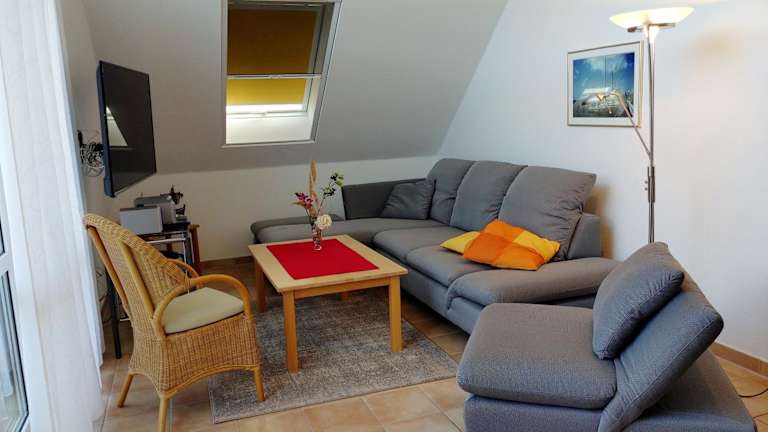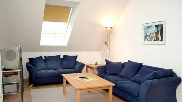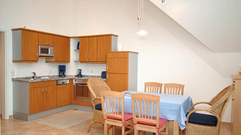 Die Ferienwohnung verfügt über zwei Schlafzimmer, eine voll ausgestattete Küche mit Kühlschrank und Geschirrspüler, sowie ein Badezimmer mit Dusche, Haartrockner und Waschmaschine. Zur Ausstattung gehören ein TV und ein CD-Player.