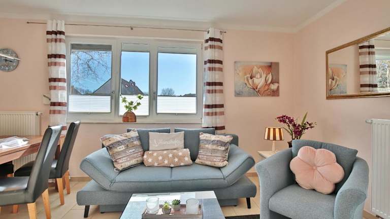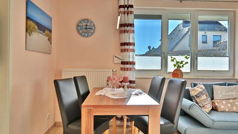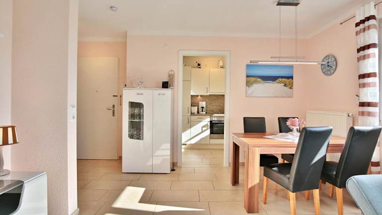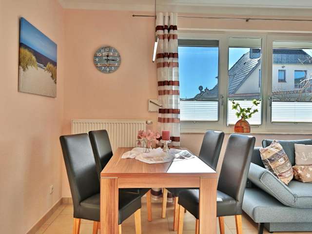 Die Residenz Seeschwalbe Appartement 4 bietet Übernachtungsmöglichkeiten in einer Ferienwohnung im Erdgeschoss. Die Unterkunft verfügt über eine Terrasse und privaten Parkplatz, wobei das Parken kostenlos ist. Die Anreise ist ab 16:00 Uhr möglich, der Check-out muss bis 10:00 Uhr erfolgen. Es sind keine Junggesellenabschiede oder ähnliche Feiern gestattet. Die Zahlung erfolgt per Überweisung vor der Anreise.