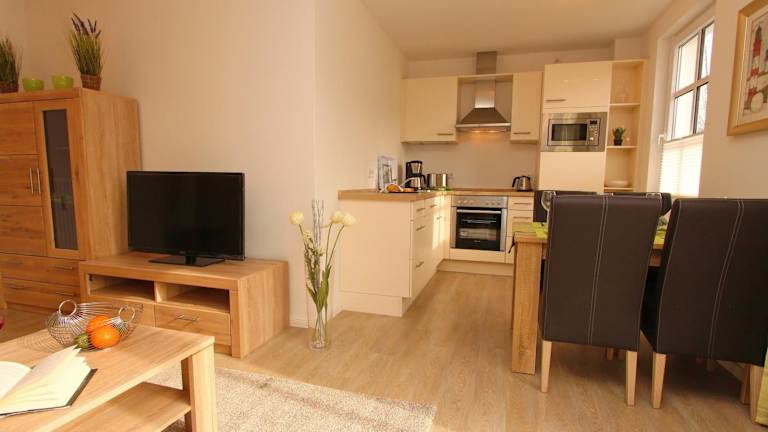 In der Residenz von Flotow Wohnung 03 haben Sie die Möglichkeit, Ihre eigenen Mahlzeiten zuzubereiten, da die Küche voll ausgestattet ist. Alternativ können Sie in den umliegenden Restaurants und Cafés speisen und die lokale Küche genießen.