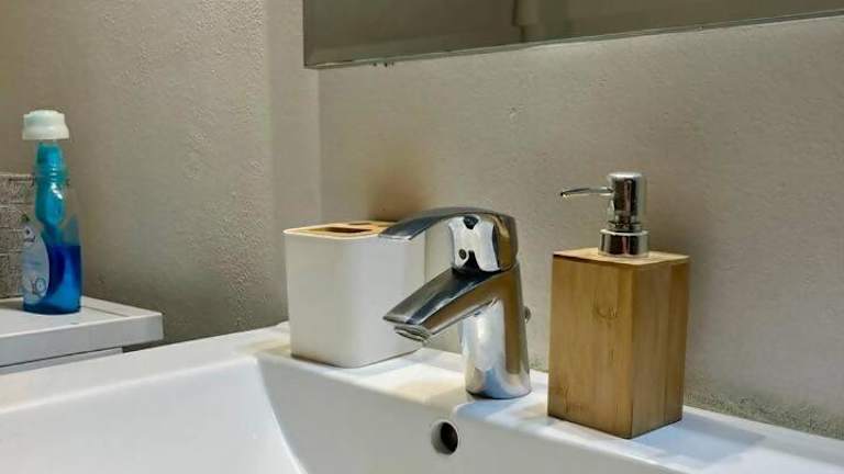 Die Ferienwohnung verfügt über ein Schlafzimmer und ein Badezimmer mit einem Bidet, einer Dusche und kostenlosen Pflegeprodukten.