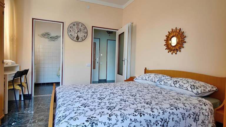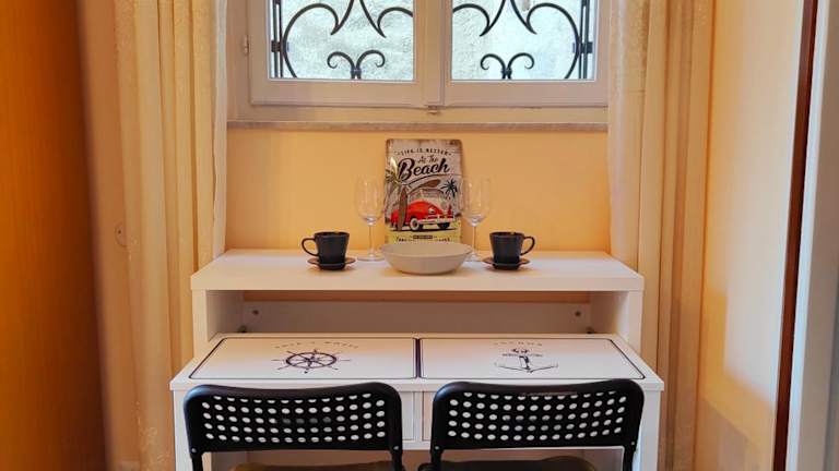 Die Ferienwohnung umfasst zwei Schlafzimmer und ein Badezimmer, das mit einem Bidet, einer Badewanne und einem Haartrockner ausgestattet ist. Zur Ausstattung gehören außerdem Fliesenböden, eine Kaffeemaschine sowie Handtücher und Bettwäsche, die bereitgestellt werden.