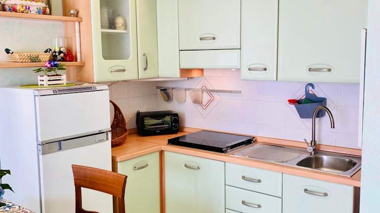 Die Ferienwohnung ist klimatisiert und besteht aus zwei Schlafzimmern, einem Wohnzimmer und einer voll ausgestatteten Küche, die mit einem Kühlschrank und einem Wasserkocher ausgestattet ist. Zudem sind ein Badezimmer mit Bidet und Dusche sowie Handtücher und Bettwäsche vorhanden. Es stehen Nichtraucherzimmer, Familienzimmer sowie ein Aufzug zur Verfügung, und die Unterkunft erfüllt hygienische Maßnahmen, einschließlich professioneller Reinigungsdienste.