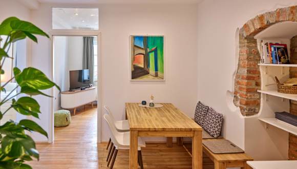Die RESIDERY zentrale Altbauwohnung bietet Platz für Gäste, die eine gemütliche und funktionale Unterkunft in einer zentralen Lage suchen. Die Wohnung stellt einen Arbeitsplatz zur Verfügung und eignet sich gut für längere Aufenthalte. Die Ferienwohnung wird von einem privaten Gastgeber betrieben und es gelten spezielle Richtlinien, um eine ruhige Atmosphäre zu gewährleisten.