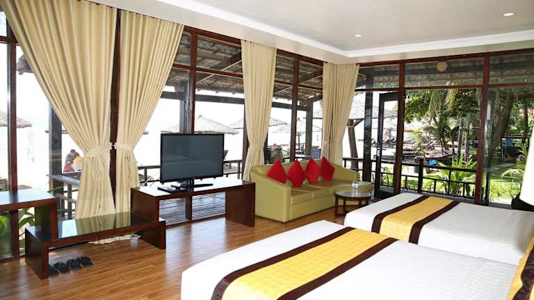 Das Arcadia Phu Quoc Resort bietet komfortable Zimmer und Bungalows mit Meerblick oder Blick auf den Garten. Die Unterkünfte sind mit einem Flachbild-TV, einem Safe und einer Minibar ausgestattet. Die strohgedeckten Bungalows zeichnen sich durch deckenhohe Fenster, Bademäntel und ein eigenes Badezimmer mit Dusche aus. WLAN nutzen Sie in allen Bereichen kostenfrei.