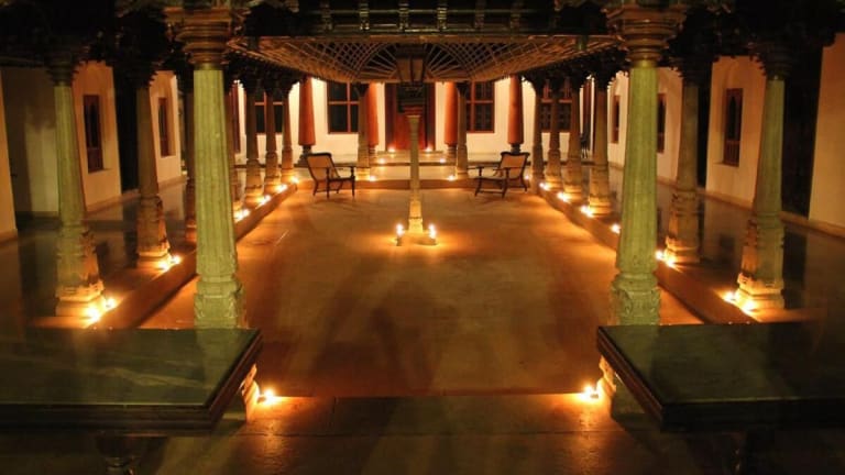 Das Chidambara Vilas - A Luxury Heritage Resort befindet sich in Chettinad, nur 5 km vom Fort Tirumayam und dem Bahnhof Tirumayam entfernt. Die günstige Lage ermöglicht es den Gästen, problemlos die Sehenswürdigkeiten der Umgebung zu erkunden. Der Bahnhof Pudokkottai und die neun Tempel der Clans von Chettinad sind nur 25 km entfernt. Die berühmte Fliesenmanufaktur Athangudi ist ebenfalls in nur 15 km erreichbar. Der Flughafen Trichy liegt etwa 60 km entfernt.