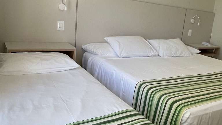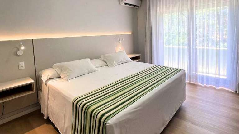 Die Zimmer im Resort Costa Dos Coqueiros bieten eine praktische und komfortable Unterkunft. Mit gefliesten Böden und lebendigen Fischdruck-Bettwäsche vermitteln die Zimmer eine fröhliche Atmosphäre. Alle Zimmer sind klimatisiert und verfügen über einen eigenen Balkon sowie kostenloses WLAN.