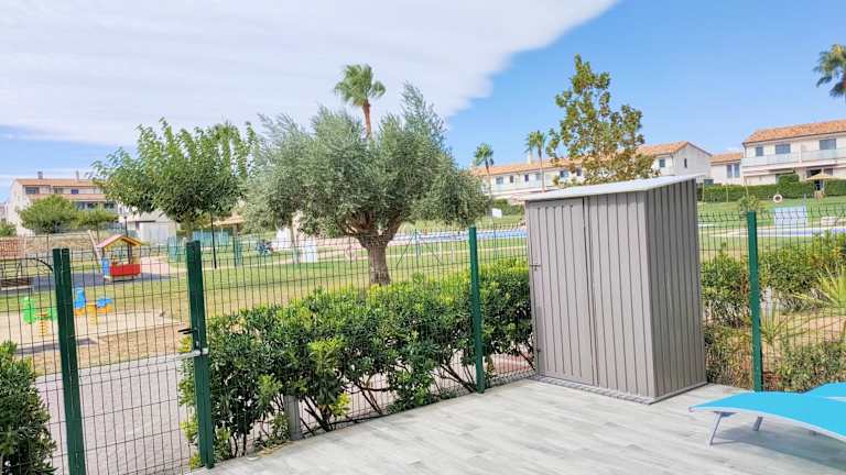 Verbringen Sie Ihren Urlaub im Resort Home 10 in Sant Jordi und genießen Sie einen erholsamen Aufenthalt mit Meerblick. Das Ferienhaus bietet einen Außenpool, ein Fitnesscenter und einen Tennisplatz. Die voll ausgestattete Küche und der Whirlpool im Badezimmer sorgen für zusätzlichen Komfort. Entspannen Sie auf der Terrasse oder im Garten und nutzen Sie den eigenen Strandbereich und den Kinderspielplatz. Die Burg Peñiscola ist nur 39 km entfernt.