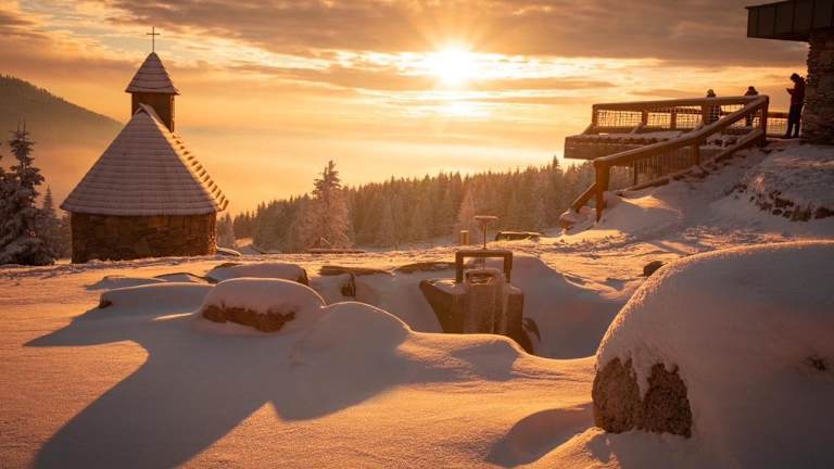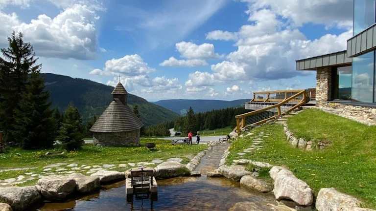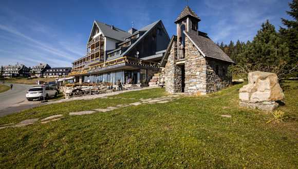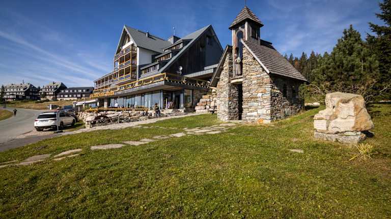 Das Hotel Resort Sv. František - Hotel Erlebachova Bouda liegt auf einem Bergrücken im Nationalpark Riesengebirge. Es ist nur 200 m von den Skipisten und 6 km vom Zentrum von Špindlerův Mlýn entfernt. Die Lage bietet somit eine perfekte Ausgangsbasis für Skifahrer und Snowboarder, aber auch für Wanderer und Naturliebhaber. Die Umgebung ist geprägt von der atemberaubenden Landschaft des Riesengebirges und bietet zahlreiche Möglichkeiten für Outdoor-Aktivitäten.