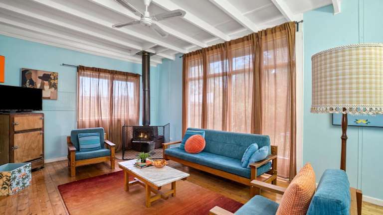 Retro Beach Babe 100 metres to the beach bietet Übernachtungsmöglichkeiten mit kostenlosem WLAN, Klimaanlage und Grillmöglichkeiten. Das Ferienhaus verfügt über einen kostenlosen Privatparkplatz und bietet Zugang zu Aktivitäten in der Umgebung wie Golf und Tischtennis.