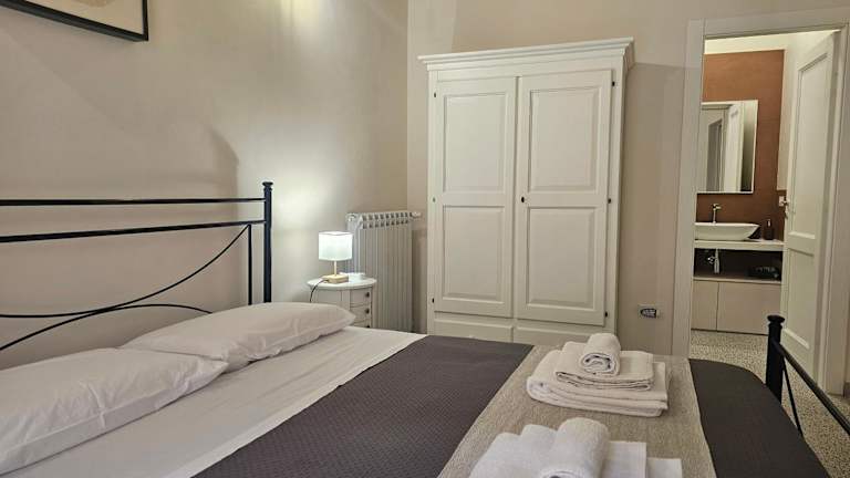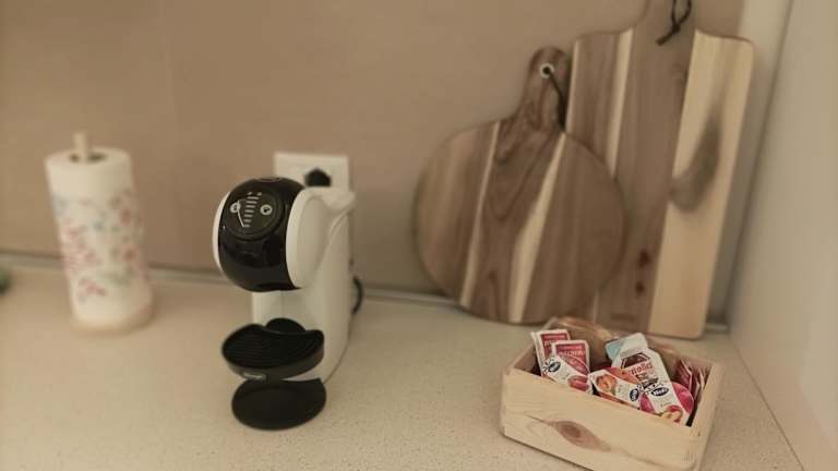Die Ferienwohnung umfasst ein Schlafzimmer und ein Wohnzimmer. Zudem ist eine voll ausgestattete Küche vorhanden, die mit einem Kühlschrank und einer Kaffeemaschine ergänzt wird. Das Badezimmer ist mit einem Bidet und einer Dusche ausgestattet. Es werden Handtücher und Bettwäsche zur Verfügung gestellt.