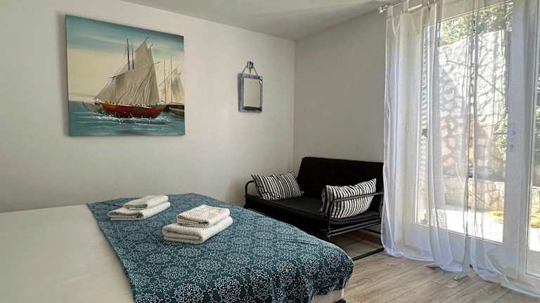 Die Ferienwohnung verfügt über ein Schlafzimmer, ein Badezimmer mit Dusche und ist mit Klimaanlage ausgestattet. Zur Ausstattung gehören WLAN sowie Elemente für Komfort wie Handtücher und Bettwäsche.