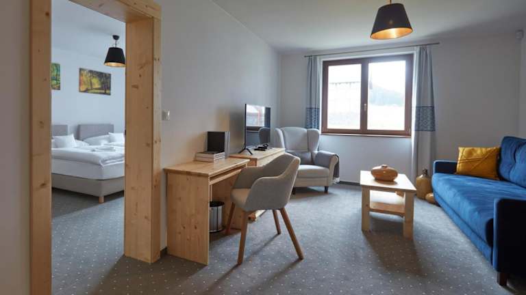 Die geräumigen Apartments im Gothal Apartmanovy Dom Smrek erstrecken sich über 2 Etagen und bieten den Gästen allen Komfort, den sie für einen angenehmen Aufenthalt benötigen. Jedes Apartment verfügt über ein eigenes Bad mit Dusche, eine komplett ausgestattete Küche, Kabel-TV, WLAN und einen Safe. Die Apartments sind geschmackvoll eingerichtet und bieten eine gemütliche Atmosphäre zum Entspannen nach einem erlebnisreichen Tag in der Natur.