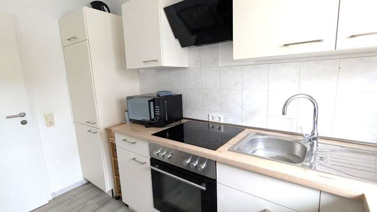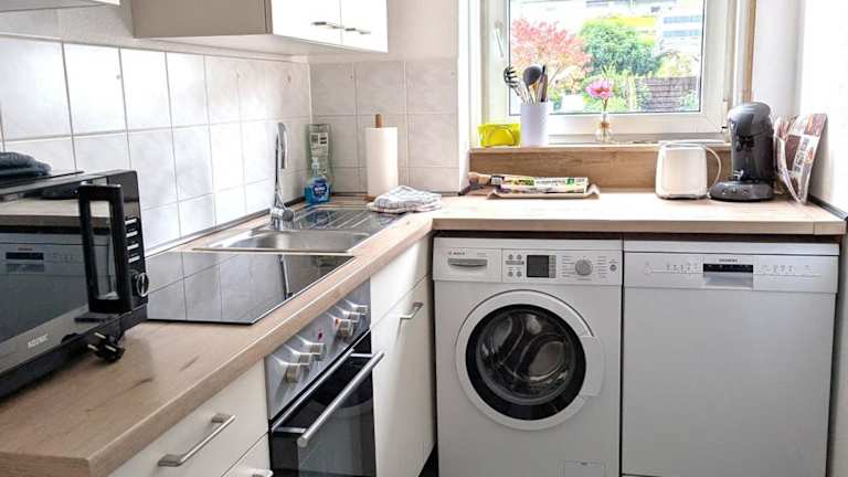 Die Ferienwohnung ist mit einer voll ausgestatteten Küche ausgestattet, die Kühlschrank, Geschirrspüler, Waschmaschine, Ofen und Herdplatte beinhaltet. Handtücher und Bettwäsche werden bereitgestellt.