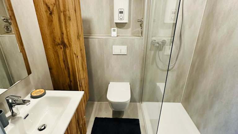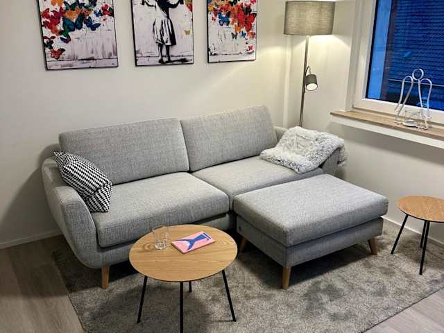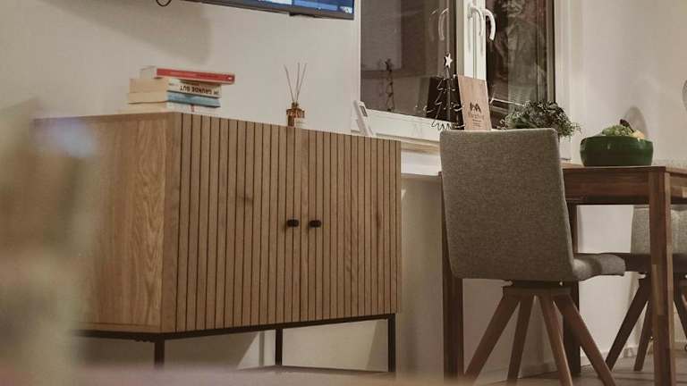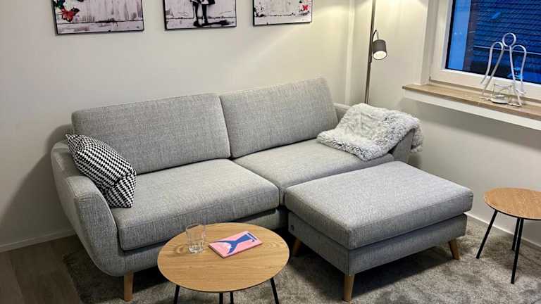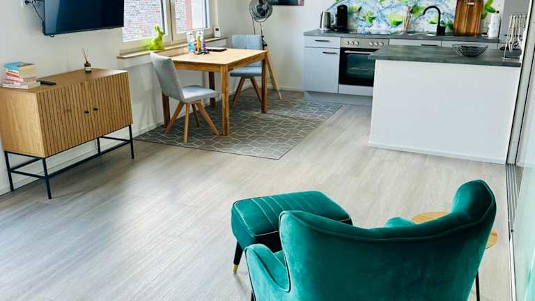 Die Wohnung umfasst ein Schlafzimmer und ist funktional eingerichtet, ausgestattet mit einem Flachbild-TV sowie einer voll ausgestatteten Küche. In der Küche stehen den Gästen ein Kühlschrank, ein Geschirrspüler, eine Waschmaschine, ein Ofen und eine Mikrowelle zur Verfügung. Handtücher und Bettwäsche werden ebenfalls bereitgestellt.