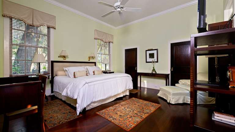 Die Zimmer im Rhett House sind klassisch eingerichtet und verfügen über Annehmlichkeiten wie Klimaanlage, einen Ventilator, ein Doppelbett, einen Schreibtisch sowie einen Fernseher mit Kabelempfang. Kostenfreies WLAN ist ebenfalls in den Zimmern verfügbar. Die Badezimmer sind mit einer Dusche, einer Whirlwanne, einem Haartrockner und Bademänteln ausgestattet und bieten Kosmetikartikel für den zusätzlichen Komfort.