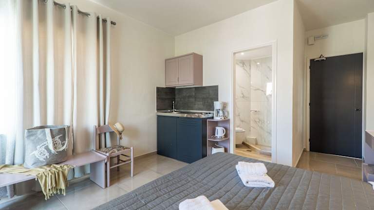 Die Apartments sind mit Satelliten-Flachbild-TV, einer voll ausgestatteten Küchenzeile mit Kühlschrank sowie einem eigenen Badezimmer mit Dusche und kostenlosen Pflegeprodukten ausgestattet.