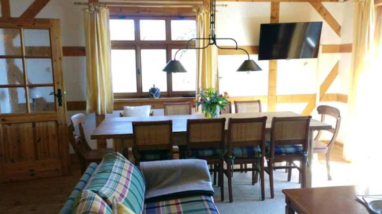 Im Rhöner Landhaus können Sie Ihre Mahlzeiten selbst zubereiten, da die Küche mit allen notwendigen Geräten ausgestattet ist. Alternativ können Sie auch den Grill im Garten nutzen und im Freien essen. In der Umgebung gibt es auch Restaurants und Cafés, in denen Sie lokale Spezialitäten probieren können.