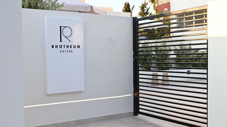 Die Rhotheon Suites bieten Übernachtungsmöglichkeiten mit Terrasse oder Balkon. Zur Ausstattung der Unterkunft gehören ein Flachbild-TV, kostenloses WLAN, ein saisonaler Außenpool sowie ein Garten. Die Unterkunft wird von einem privaten Gastgeber geführt.