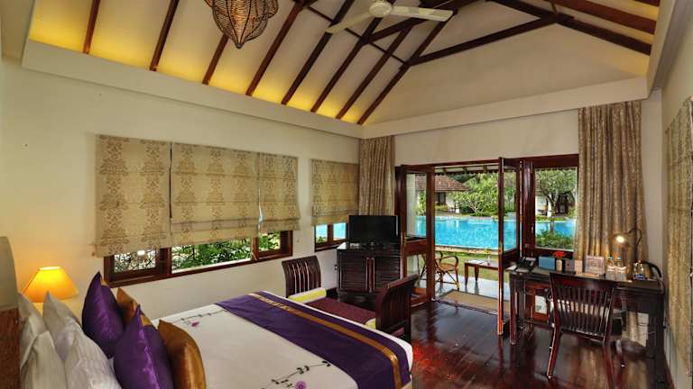 Das Rhythm Kumarakom (ehemals Aveda Resorts) ist ein luxuriöses 5-Sterne-Hotel in Kottayam, das direkt am See gelegen ist. Mit seinen erstklassigen Einrichtungen wie einem Wellnessbereich, einem Außenpool und einem Spielzimmer bietet das Hotel seinen Gästen einen erholsamen und angenehmen Aufenthalt. Genießen Sie regionale Küche in einem der Restaurants oder lassen Sie sich vom Zimmerservice verwöhnen. Das freundliche Personal, der kostenfreie Parkservice und das kostenlose WLAN runden das Angebot ab.
