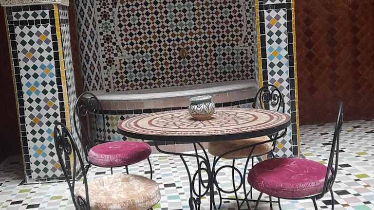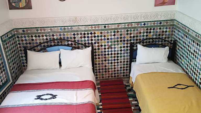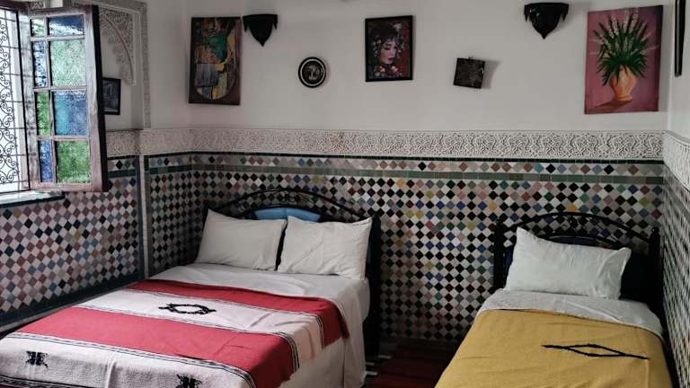 Das Riad Amal in Fès ist eine charmante Unterkunft, die mit einem schönen Garten, einer gemütlichen Gemeinschaftslounge und einer Terrasse aufwartet. Hier können Sie entspannen und die freundliche Atmosphäre genießen. Der Zimmerservice und der Grill stehen Ihnen ebenfalls zur Verfügung. Das Riad bietet außerdem eine 24-Stunden-Rezeption, Flughafentransfers und kostenfreies WLAN. Die Zimmer sind komfortabel eingerichtet und verfügen über ein eigenes Bad mit Bidet, Haartrockner und Bademänteln. Alle Zimmer sind klimatisiert und bieten einen Schreibtisch. Jeden Morgen wird ein leckeres vegetarisches, veganes oder Halal-Frühstück serviert. Im hauseigenen Restaurant können Sie afrikanische, marokkanische und Pizzagerichte genießen. Vegetarische, Halal- und vegane Speisen sind auf Anfrage erhältlich. In der Nähe des Riad Amal finden Sie beliebte Sehenswürdigkeiten wie den Königspalast von Fès, den Batha-Platz und die Medersa Bouanania. Der nächstgelegene Flughafen, Fès-Saïs, ist 17 km entfernt.