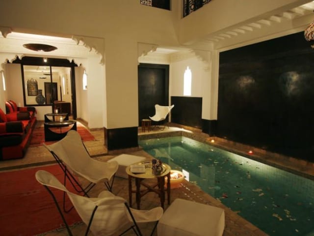 Das Riad Amin in Marrakesch bietet seinen Gästen einen einzigartigen Aufenthalt innerhalb der Medina. Mit einem Pool, einer klimatisierten Lounge und einem Restaurant mit Kamin können Sie hier in entspannter Atmosphäre die marokkanische Kultur erleben. Die Zimmer sind im modernen marokkanischen Stil eingerichtet und verfügen über ein eigenes Bad. Genießen Sie Ihr Frühstück auf der Außenterrasse und probieren Sie marokkanische Gerichte im Speisezimmer. Das Riad Amin bietet auch einen Massageraum und einen Innenpool. Die Sehenswürdigkeiten der Stadt sind gut erreichbar und der Flughafen ist nur 3 km entfernt.